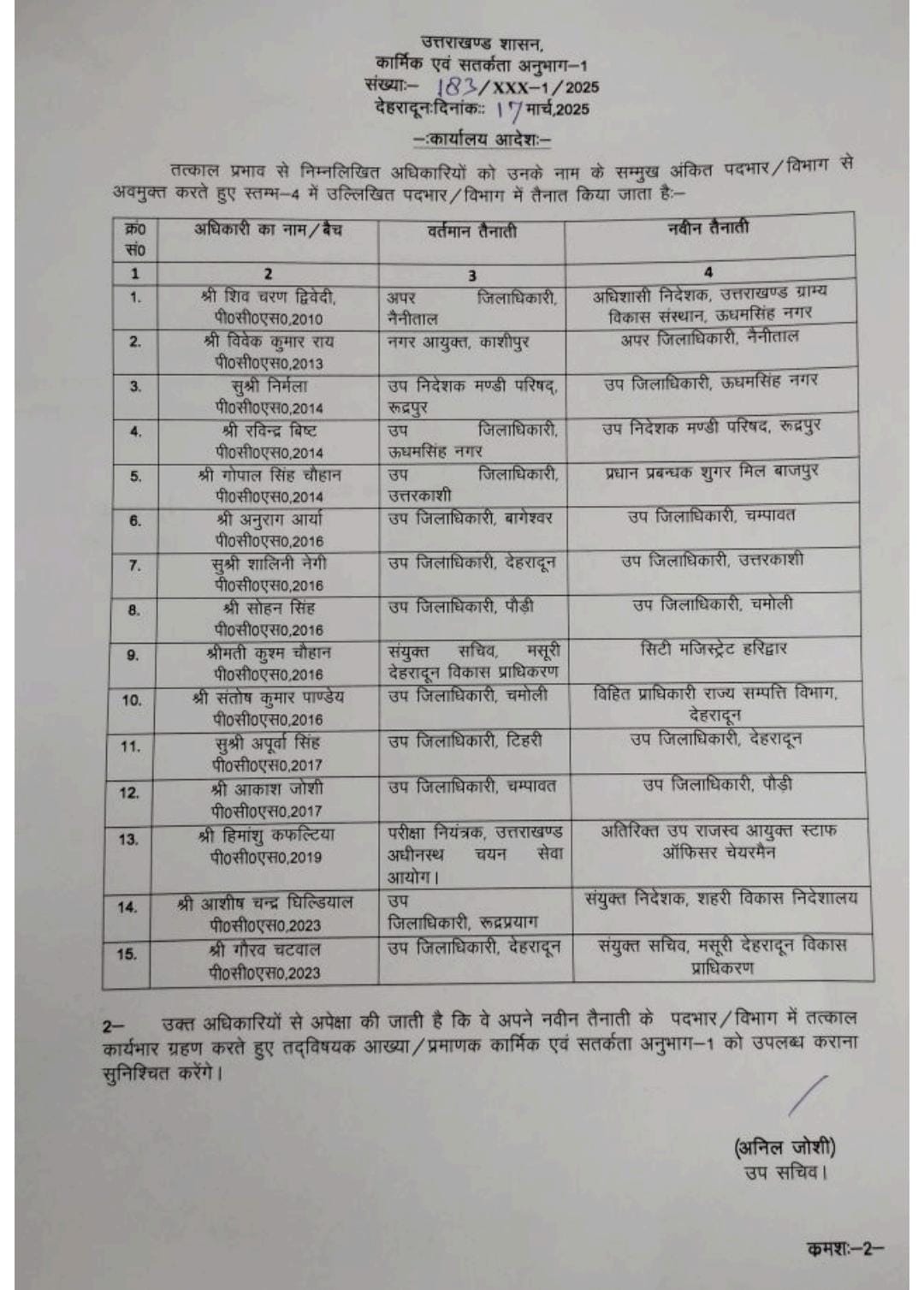 PCS आशीष चंद्र घिल्डियाल को संयुक्त निदेशक शहरी विकास बनाया गया।