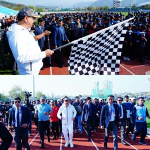 देहरादून :- मुख्यमंत्री पुष्कर सिंह धामी ने रविवार को एथलैक्टिस ग्राउण्ड, महाराणा प्रताप स्पोर्ट्स कॉलेज, रायपुर, देहरादून में राज्य सरकार ( सेवा, सुशासन और विकास ) के 03 वर्ष पूर्ण होने के अवसर पर आयोजित कार्यक्रम में प्रतिभाग कर फिट इण्डिया रन का फ्लैग ऑफ किया।