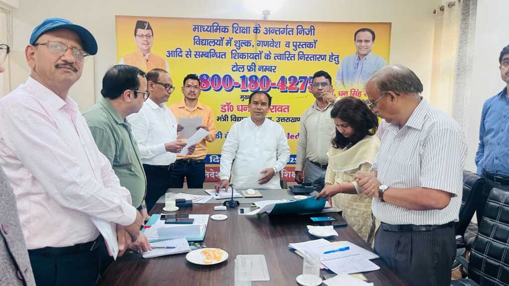 सूबे के विद्यालयी शिक्षा मंत्री डॉ. धन सिंह रावत ने आज माध्यमिक शिक्षा निदेशालय में शिक्षा विभाग के टोल फ्री नम्बर 1800 180 4275 एवं विभागीय वेबसाइट schooleducation.uk.gov.in कर विधिवत शुभारम्भ किया। इस अवसर पर डॉ. रावत ने कहा कि प्रदेशभर से अभिभावकों द्वारा निजी स्कूलों के शुल्क बढ़ाने, स्कूली ड्रेस एवं महंगी किताबें थोपे जाने को लेकर विभाग को लगातार शिकायतें मिल रही है। जिसको देखते हुये विभाग द्वारा एक टोल फ्री नम्बर जारी किया गया है जिस पर अभिभावक प्रत्येक कार्यदिवस में सुबह 9ः30 से शाम 5ः30 बजे तक कॉल करके अपनी समस्याएं एवं शिकायतें दर्ज करा सकते हैं। निदेशालय स्तर से सक्षम अधिकारियों द्वारा दर्ज शिकायतों का प्रत्येक दिन मूल्यांकन कर सम्बंधित जनपद के अधिकारियों को निस्तारण हेतु भेजा जायेगा। सम्बंधित जनपद के अधिकारी को प्राप्त शिकायत का निराकरण करते हुये निदेशालय को रिपोर्ट करनी होगी।