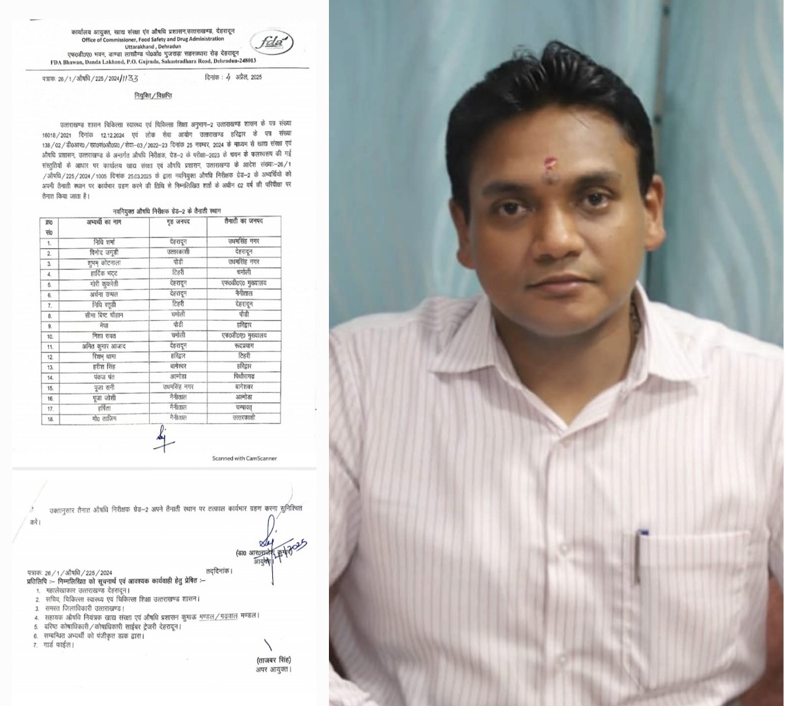 देहरादून :- उत्तराखंड सरकार ने राज्य में औषधि निरीक्षक ग्रेड-2 के 18 नए पदों पर नियुक्ति आदेश जारी कर दिए हैं। मुख्यमंत्री पुष्कर सिंह धामी और स्वास्थ्य मंत्री डॉ. धन सिंह रावत ने सभी नव-नियुक्त औषधि निरीक्षकों को शुभकामनाएं देते हुए जनहित में पूरी निष्ठा और ईमानदारी से कार्य करने की अपील की।