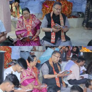 देहरादून :- हनुमान जन्मोत्सव के पावन अवसर पर शनिवार को टपकेश्वर मंदिर में सुंदरकांड पाठ का भव्य आयोजन किया गया। इस अवसर पर कैबिनेट मंत्री गणेश जोशी ने अपनी धर्मपत्नी निर्मला जोशी के साथ कार्यक्रम में प्रतिभाग किया। कैबिनेट मंत्री गणेश जोशी ने श्रद्धा एवं भक्ति भाव से सुंदरकांड का पाठ कर प्रदेशवासियों के सुख, शांति और समृद्धि की कामना की।