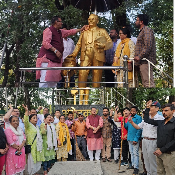 देहरादून :- भारत रत्न डॉ. भीमराव अंबेडकर की जयंती की पूर्व संध्या पर देहरादून के गढ़ी कैंट क्षेत्र में शहीद दुर्गामल्ल मंडल, भारतीय जनता पार्टी द्वारा स्वच्छता एवं दीप प्रज्वलन कार्यक्रम का आयोजन किया गया। इस अवसर पर कैबिनेट मंत्री गणेश जोशी ने कार्यक्रम में प्रतिभाग करते हुए बाबा साहब की प्रतिमा पर माल्यार्पण कर उन्हें श्रद्धांजलि अर्पित की।