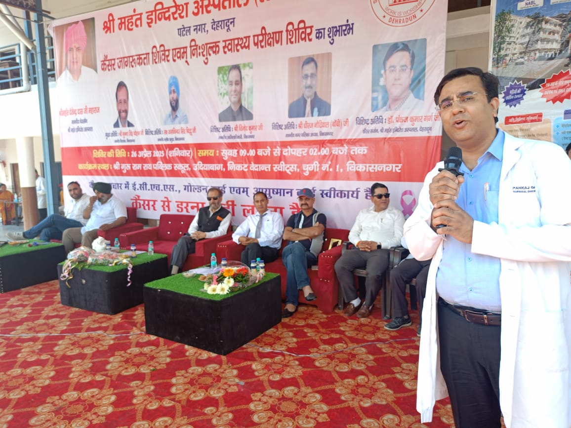 श्री महंत इन्दिरेश अस्पताल के वरिष्ठ कैंसर सर्जन डाॅ पंकज कुमार गर्ग ने कैंसर जागरूकता पर दिया व्याख्यान।