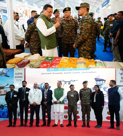 देहरादून :- सीएम धामी ने उत्तराखंड को डिफेंस प्रोडक्शन हब के रूप में स्थापित करने का संकल्प व्यक्त करते हुए कहा कि हमारी सरकार युवाओं में टेक्नॉलजी के प्रति रूझान पैदा करने का प्रयास करने के साथ ही युवाओं को इनोवेशन के क्षेत्र में आगे बढ़ाकर उत्तराखण्ड को ड्रोन एवं रक्षा विनिर्माण के क्षेत्र में अग्रणी बनाने की दिशा में गंभीरता से कार्य कर रही हैं। मुख्यमंत्री पुष्कर सिंह धामी देहरादून छावनी के जसवंत ग्राउंड में आयोजित ‘‘सूर्या ड्रोन टेक 2025’’ कार्यक्रम में सम्मिलित हुए तथा ड्रोन प्रदर्शनी का अवलोकन किया।