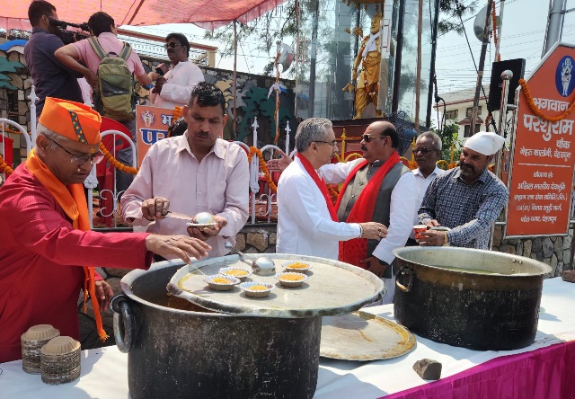 उन्होंने बताया कि भगवान परशुराम चौक नेहरू कालोनी देहरादून पर देवभूमि की चारधाम यात्रा जो प्रदेश की आर्थिकी की रीढ़ की हड़ी है उसकी की कुशलता के लिए व भगवान परशुराम का आशीर्वाद सब पर बना रहे इसके लिए हवन किया गया। पंडित शुभम भारद्वाज ने वैदिक मंत्रो के साथ यजमान परिवारों से हवन की क्रिया संम्पन करवाई। इस अवसर पर भक्तों के लिए जलजीरा व हलुवा प्रसाद का वितरण परशुराम चौक पर किया गया। प्रातः साढे दस बजे से पंडित संजय शर्मा ने सनातन धर्म मंदिर नेहरू कालोनी ने मधुर भजनो से प्रभु का गुणगान किया मुख्य अतिथि जनता को अपने आशीष वचनों से सम्बोधित किया व अन्य अतिथियों ने भी अपने विचार रखें। दोपहर एक बजे से भंडारा प्रसाद की व्यवस्था रही।