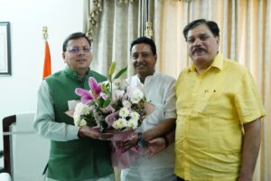 देहरादून :- बुधवार को उत्तराखंड प्रदेश कांग्रेस कमेटी के मुख्य समन्वयक एवं प्रदेश मीडिया प्रभारी राजीव महर्षि एवं पूर्व राज्य मंत्री अजय सिंह जी ने उत्तराखंड के परम सम्मानित मुख्यमंत्री पुष्कर सिंह धामी से मुख्यमंत्री निवास देहरादून में शिष्टाचार भेंट की।