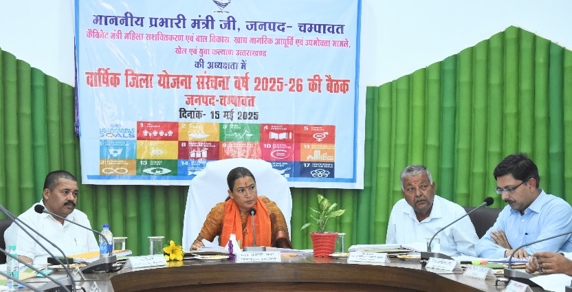 देहरादून/चंपावत :- गुरुवार को एनएचपीसी अतिथि गृह सभागार में जिला योजना समिति की बैठक जनपद प्रभारी मंत्री एवं उत्तराखंड सरकार की महिला सशक्तिकरण व बाल विकास मंत्री रेखा आर्या की अध्यक्षता में हुई। बैठक में वित्तीय वर्ष 2025–26 के लिए कुल ₹68 करोड़ 57 लाख 10 हजार (₹6857.10 लाख) की वार्षिक जिला योजना को अनुमोदित किया गया।