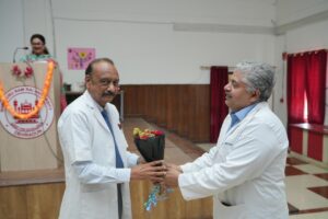 देहरादून :- श्री गुरु राम राय मेडिकल एंड हेल्थ साइंसेज देहरादून में पहली बार इंटर्न छात्रों के लिए कॉलेज ऑडिटोरियम में एक विशेष कार्यक्रम आयोजित किया गया। इस कार्यक्रम के समन्वयक डॉ. रश्मि सिंगला और डॉ. आशुतोष सिंह रहे, जिसका आयोजन प्राचार्य डॉ. अशोक नायक के मार्गदर्शन एवं निर्देशन में किया गया। कार्यक्रम का उद्घाटन मुख्य अतिथि निदेशक डॉ. मनोज गुप्ता एवं अन्य वरिष्ठ संकाय सदस्यों की उपस्थिति में दीप प्रज्वलन और सरस्वती वंदना के साथ हुआ, जिसे डॉ. हरमीत ने प्रस्तुत किया। इसके पश्चात डॉ. मनोज गुप्ता, एम.एस. डॉ. उत्कर्ष शर्मा और प्राचार्य डॉ. अशोक नायक ने इंटर्नशिप कार्यक्रम पर अपने विचार साझा किए। कार्यक्रम का संचालन डॉ. हरमीत कौर ने अत्यंत सुंदर और प्रभावी ढंग से किया।