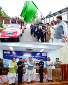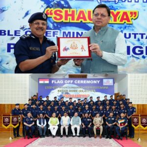 देहरादून :- मुख्यमंत्री पुष्कर सिंह धामी ने बुधवार को मुख्यमंत्री आवास स्थित मुख्य सेवक सदन देहरादून में राष्ट्रीय आपदा मोचन बल (NDRF) द्वारा आयोजित तृतीय पर्वतारोहण अभियान ‘शौर्य’ के फ्लैग ऑफ कार्यक्रम में प्रतिभाग किया।