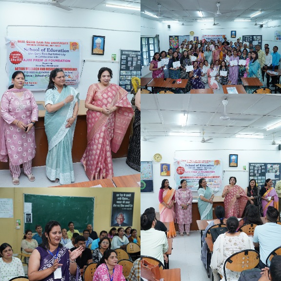 देहरादून :- एसजीआरआर विश्वविद्यालय के शिक्षा संकाय द्वारा एसजीआरआर पब्लिक स्कूलों के शिक्षकों एवं शोध छात्रों के लिए ऐक्शन रिसर्च और रिसर्च मेथाडोलॉजी विषय पर अजीम प्रेमजी फाउंडेशन के सहयोग से 21 मई से 23 मई तक तीन दिवसीय कार्यशाला का सफलतापूर्वक आयोजन किया गया। इस कार्यशाला का उद्देश्य शिक्षकों को अनुसंधान की मूलभूत समझ प्रदान करना और कक्षा में सुधार हेतु चिंतनशील एवं व्यवस्थित दृष्टिकोण विकसित करना रहा।