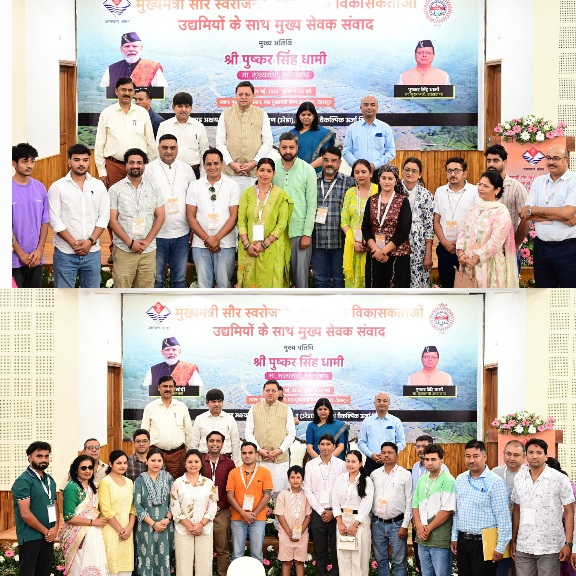 देहरादून :- मुख्यमंत्री पुष्कर सिंह धामी ने गुरूवार को मुख्यमंत्री आवास स्थित मुख्य सेवक सदन में मुख्यमंत्री सौर स्वरोजगार योजना के विकासकर्ताओं के साथ मुख्य सेवक संवाद कार्यक्रम में प्रतिभाग किया। इस अवसर पर मुख्यमंत्री ने घोषणा की कि मुख्यमंत्री सौर स्वरोजगार योजना से जुड़ी महिलाओं को सौर सखी नाम दिया जायेगा। मुख्यमंत्री सौर स्वरोजगार योजना और स्वरोजगार से जुड़ी अन्य योजनाओं को व्यापक स्तर पर बढ़ावा देने विकासखण्डों में विशेष शिविरों के आयोजन किये जायेंगे। सौर प्लांटों के रख-रखाव के लिए प्रत्येक जनपद में लोगों को प्रशिक्षण दिया जायेगा।