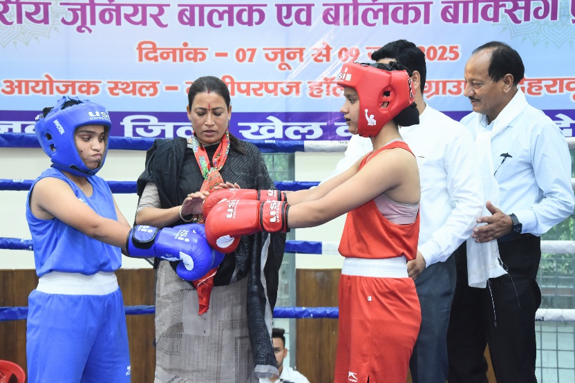 देहरादून :- प्रदेश की खेल मंत्री रेखा आर्या ने शनिवार को परेड ग्राउंड के मल्टीपरपज हॉल में राज्य स्तरीय जूनियर बालक एवं बालिका बॉक्सिंग प्रतियोगिता का शुभारंभ किया। इस प्रतियोगिता में प्रदेश के विभिन्न जनपदों से आए कुल 170 खिलाड़ी हिस्सा ले रहे हैं।