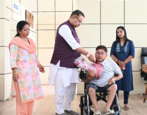 देहरादून :- कैबिनेट मंत्री गणेश जोशी ने रविवार को अपने कैंप कार्यालय में नीलकंठ विहार निवासी दिव्यांग यश नेगी को इलेक्ट्रॉनिक व्हीलचेयर प्रदान की। इस अवसर पर मंत्री जोशी ने कहा कि सरकार समाज के अंतिम पंक्ति में खड़े व्यक्ति तक सुविधा पहुँचाने के लिए संकल्पित है। उन्होंने बताया कि यश नेगी लंबे समय से व्हीलचेयर की आवश्यकता महसूस कर रहे थे, जिसे देखते हुए व्यक्तिगत स्तर पर यह सहयोग किया गया है। मंत्री गणेश जोशी ने कहा कि प्रधानमंत्री नरेंद्र मोदी के “सबका साथ, सबका विकास और सबका विश्वास” के संकल्प के तहत प्रदेश सरकार दिव्यांगजन सहित समाज के हर वर्ग के कल्याण के लिए समर्पित है। उन्होंने कहा कि जरूरतमंदों की सहायता करना केवल एक औपचारिकता नहीं, बल्कि उनकी व्यक्तिगत प्रतिबद्धता भी है।