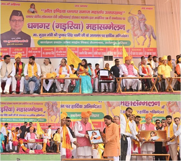 देहरादून/हरिद्वार :- मुख्यमंत्री पुष्कर सिंह धामी ने रविवार को हरिद्वार में धनगर समाज द्वारा आयोजित लोकमाता अहिल्याबाई होल्कर की त्रिशताब्दी जयंती कार्यक्रम में प्रतिभाग किया।