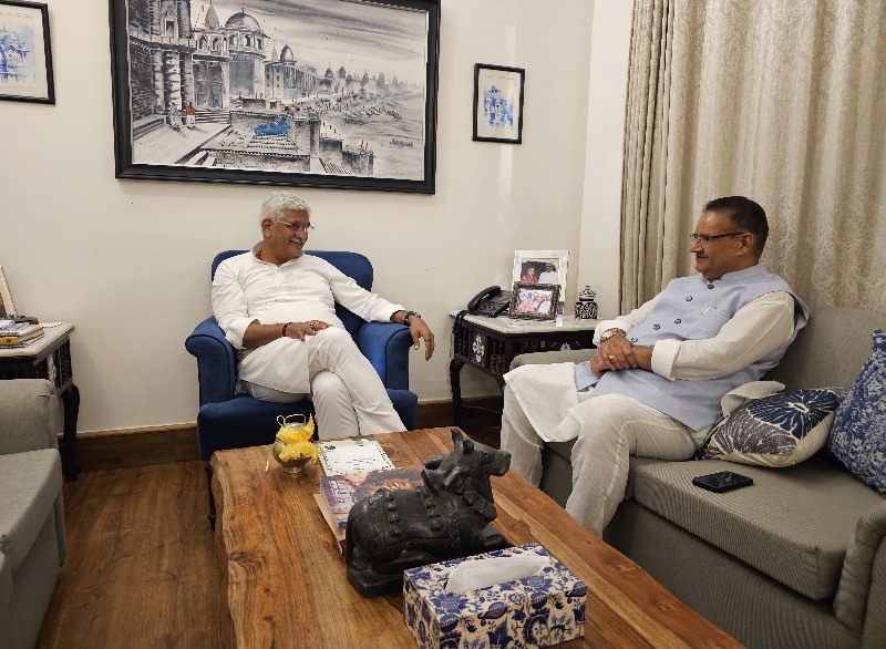 देहरादून :- मंगलवार को प्रदेश के कृषि मंत्री गणेश जोशी ने नई दिल्ली में केंद्रीय पर्यटन एवं संस्कृति मंत्री गजेंद्र सिंह शेखावत से शिष्टाचार भेंट की। इस दौरान, मंत्री जोशी ने केंद्रीय मंत्री शेखावत को गंगाजलि और उत्तराखण्ड के पारंपरिक औद्योनिक उत्पाद भेंट की। मुलाकात के दौरान राज्य में पर्यटन सुविधाओं को बेहतर बनाने और नए पर्यटन स्थलों को विकसित करने के लिए केंद्र सरकार से सहयोग मांगा।