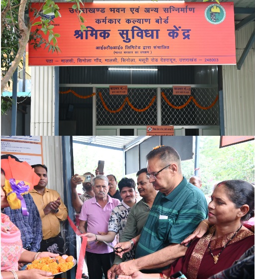 श्रमिक सुविधा केन्द्र का किया उद्घाटन, कैबिनेट मंत्री गणेश जोशी।