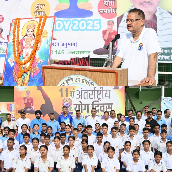 देहरादून/पंतनगर :- अंतरराष्ट्रीय योग दिवस 2025 के अवसर पर जी.बी. पंत कृषि एवं प्रौद्योगिकी विश्वविद्यालय, पंतनगर में एक भव्य योग कार्यक्रम का आयोजन किया गया। कार्यक्रम के मुख्य अतिथि उत्तराखंड सरकार के कृषि एवं कृषक कल्याण मंत्री गणेश जोशी ने शिरकत की। कृषि मंत्री ने विश्वविद्यालय के अध्यापकों, कार्मिकों, विद्यार्थियों, एनसीसी के कैडेटों तथा उधमसिंह नगर जनपद से पधारे नागरिकों के साथ सामूहिक योगाभ्यास में भाग लिया।