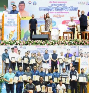 देहरादून :- अंतर्राष्ट्रीय ओलंपिक दिवस पर मुख्यमंत्री पुष्कर सिंह धामी और खेल मंत्री रेखा आर्या ने प्रदेश के लिए पदक जीतने वाले सैकड़ो खिलाड़ियों को सम्मानित किया । यह आयोजन सोमवार को परेड ग्राउंड के मल्टीपरपज हॉल में किया गया।