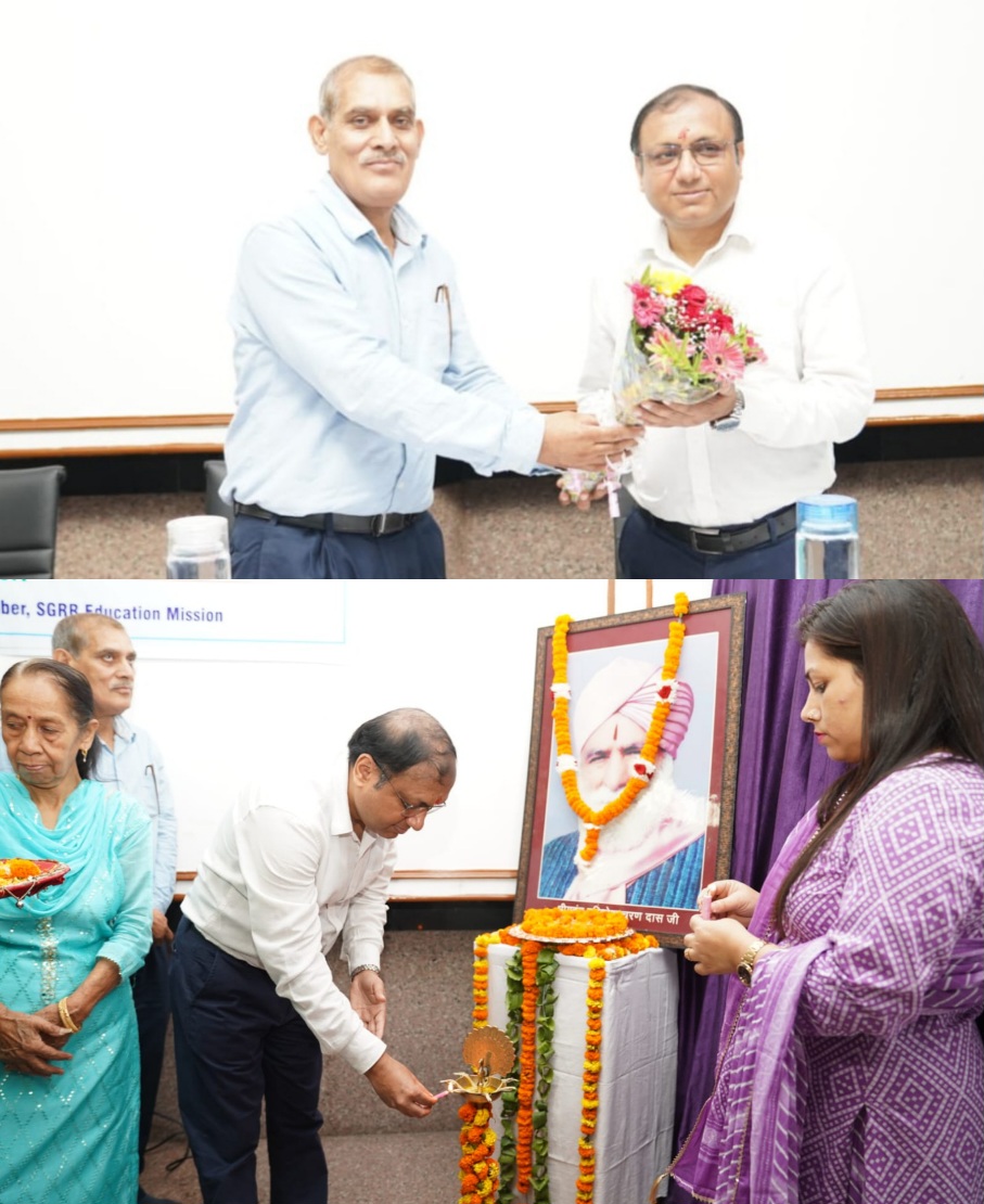 श्री महंत इन्दिरेश अस्पताल के सभागार में आयोजित कार्यक्रम का शुभारंभ मुख्य अतिथि मनीष अग्रवाल, क्षेत्रीय अधिकारी, सीबीएसई, विशिष्ट अतिथि वीना रावत आजीवन सदस्य एसजीआरआर एजुकेशन मिशन, विजय नौटियाल, अधिकृत हस्ताक्षरी प्रबन्धक, एसजीआरआर एजुकेशन मिशन, विनय मोहन थपलियाल, शिक्षा अधिकारी, एसजीआरआर एजुकेशन मिशन मनोज जखमोला, मुख्य वित्त नियंत्रक, एसजीआरआर एजुकेशन मिशन, जी.एस. तोमर, शिक्षा अधिकारी, एसजीआरआर एजुकेशन मिशन ने दीप प्रज्जवलित कर एवम् ब्रहमलीन श्रीमहंत इन्दिरेश चरण दास जी महाराज के चित्र पर माल्यार्पण कर कार्यक्रम का शुभारंभ किया।