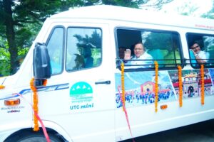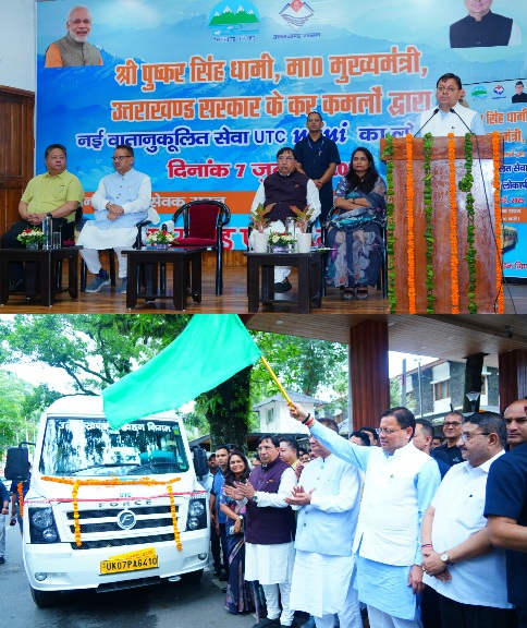 देहरादून :- मुख्यमंत्री पुष्कर सिंह धामी ने सोमवार को मुख्यमंत्री कैम्प कार्यालय में आयोजित एक समारोह में उत्तराखण्ड परिवहन निगम द्वारा संचालित की जा रही 20 नई वातानुकूलित यूटीसी मिनी (टैम्पो ट्रेवलर) का फ्लैग ऑफ किया। इनमें से 10 टैम्पो ट्रेवलर वाहन देहरादून-मसूरी और 10 टैम्पो ट्रेवलर वाहन हल्द्वानी नैनीताल रूट पर चलेंगे। इससे नैनीताल- हल्द्वानी और देहरादून – मसूरी के बीच जाम की समस्या में भी कमी आयेगी। मुख्यमंत्री ने कहा कि यह पहल सफल रही तो, इस तरह की सेवाओं की संख्या और बढ़ाई जायेगी। इस अवसर पर मुख्यमंत्री ने कैम्प कार्यालय से जीटीसी हेलीपैड तक टैम्पो ट्रेवलर से सफर भी किया।