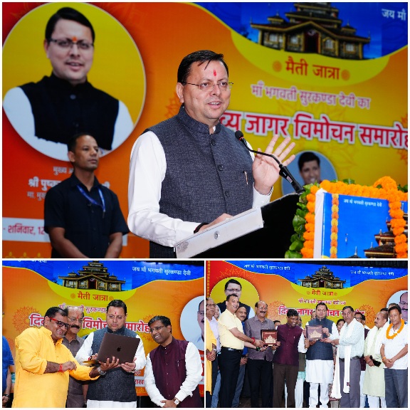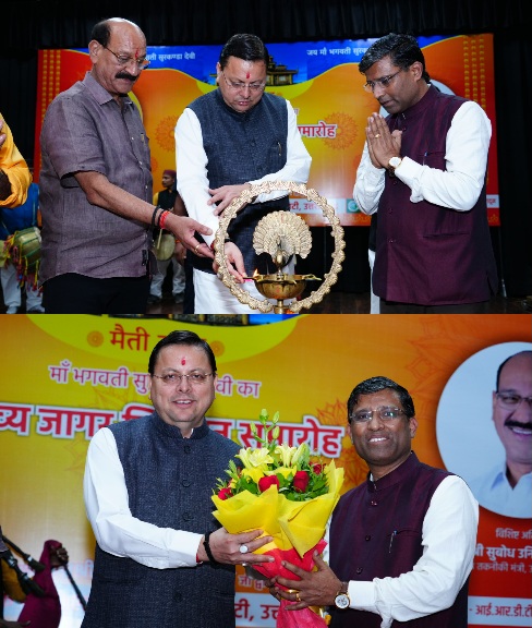 देहरादून :- मुख्यमंत्री पुष्कर सिंह धामी शनिवार को आई आर डी टी ऑडिटोरियम देहरादून में हिमालयन हेरिटेज सोसाइटी द्वारा आयोजित भगवती सुरकंडा मां दिव्य जागर विमोचन समारोह में शामिल हुए। मुख्यमंत्री ने जागर गायक प्रीतम भरतवाण के सुरकंडा देवी पर जागर का विमोचन किया।