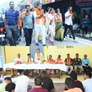 नैनीताल जनपद के गरम पानी मंडल के अंतर्गत खैरना में भवाली गांव सीट से जिला पंचायत सदस्य पद के लिए पार्टी समर्थित उम्मीदवार रोहित कुमार आर्या के समर्थन में रोड शो और जनसभा में हिस्सा लिया।