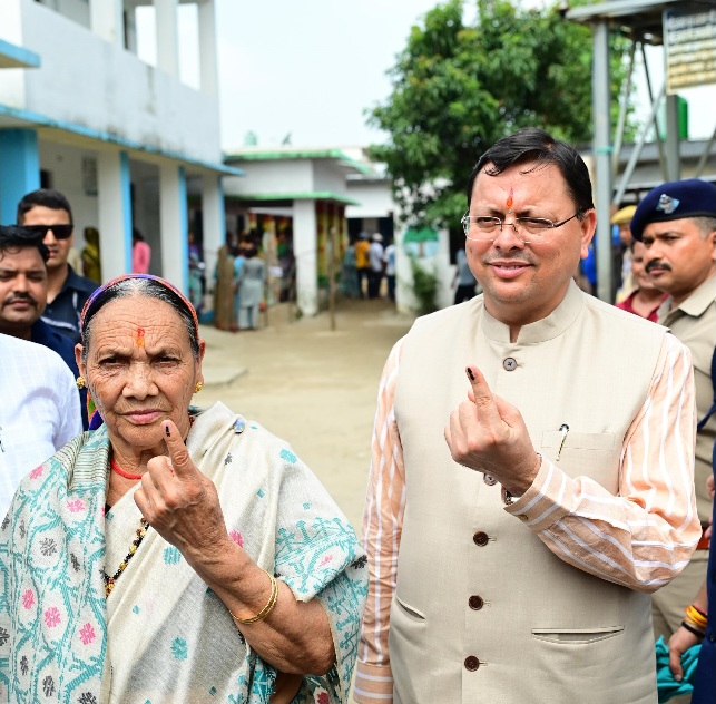 देहरादून/ऊधमसिंह :- मुख्यमंत्री पुष्कर सिंह धामी ने त्रिस्तरीय पंचायत चुनाव के क्रम में गुरुवार को राजकीय आदर्श प्राथमिक विद्यालय नगला तराई, जिला ऊधमसिंह नगर में बूथ न0 3 पर लाईन में लगकर मतदान किया। मुख्यमंत्री के साथ उनकी माताजी श्रीमती बिशना देवी ने भी मतदान किया।