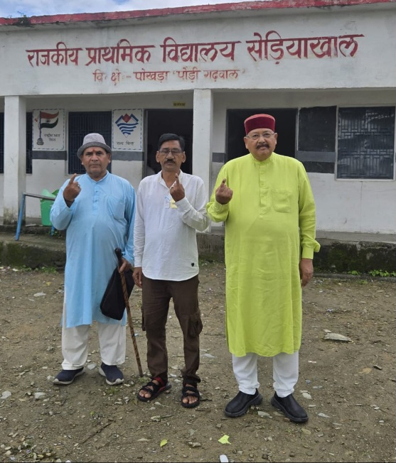 देहरादून/पौड़ी (पोखड़ा) :- प्रदेश के पंचायतीराज मंत्री सतपाल महाराज ने पंचायती राज व्यवस्था को मजबूत करने के लिए अपने विधानसभा क्षेत्र चौबट्टाखाल के विकासखण्ड पोखड़ा स्थित राजकीय प्राथमिक विद्यालय सेड़ियाखाल के बूथ नं 56 पर पहुंच कर अपने मताधिकार का प्रयोग किया।