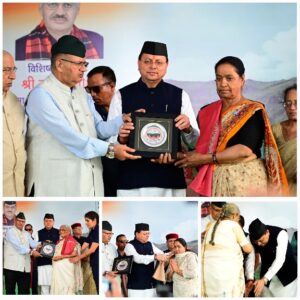 देहरादून :- मुख्यमंत्री पुष्कर सिंह धामी ने शनिवार को गांधी पार्क, देहरादून में कारगिल विजय दिवस (शौर्य दिवस) के अवसर पर शहीद स्मारक पर पुष्प चक्र अर्पित कर कारगिल शहीदों को श्रद्धांजलि दी। मुख्यमंत्री ने इस अवसर पर कारगिल शहीदों के परिवारजनों को भी सम्मानित किया।