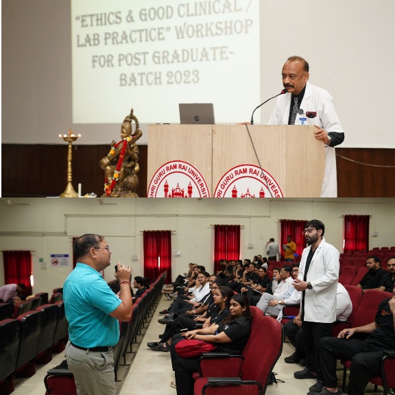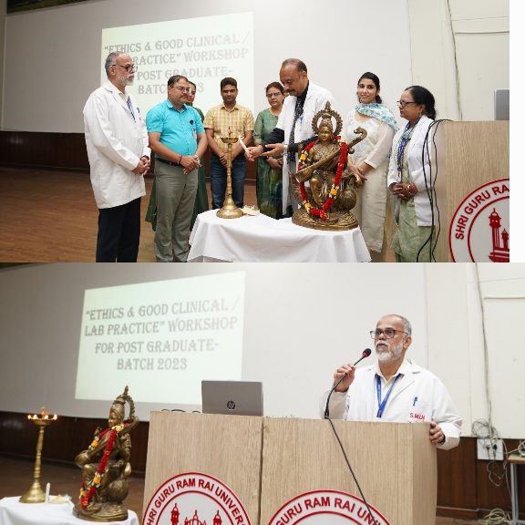 देहरादून :- श्री गुरु राम राय इंस्टीट्यूट ऑफ मेडिकल एण्ड हेल्थ साइंसेज में इथिक्स एवम् गुड क्लीनिकल एवम् लैब प्रैक्टिस विषय पर एक दिवसीय कार्यशाला का आयोजन किया गया। कार्यशाला में एसजीआरआर मेडिकल काॅलेज के मेडिकल पोस्ट ग्रेजुएट, डीएम व एमसीएच कोर्स कर रहे 100 से अधिक छात्र-छात्राओं ने सक्रिय सहभागिता की।