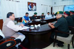देहरादून :- मुख्यमंत्री पुष्कर सिंह धामी से शुक्रवार को मुख्यमंत्री कैंप कार्यालय में भारतीय सेना की मध्य कमान के जनरल ऑफिसर कमांडिंग-इन-चीफ लेफ्टिनेंट जनरल अनिंद्य सेन गुप्ता (UYSM, AVSM, YSM) ने शिष्टाचार भेंट की। इस दौरान राज्य के सीमावर्ती क्षेत्रों में सैन्य एवं नागरिक प्रशासन के बीच बेहतर समन्वय स्थापित करने को लेकर विचार-विमर्श हुआ।