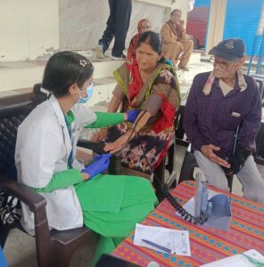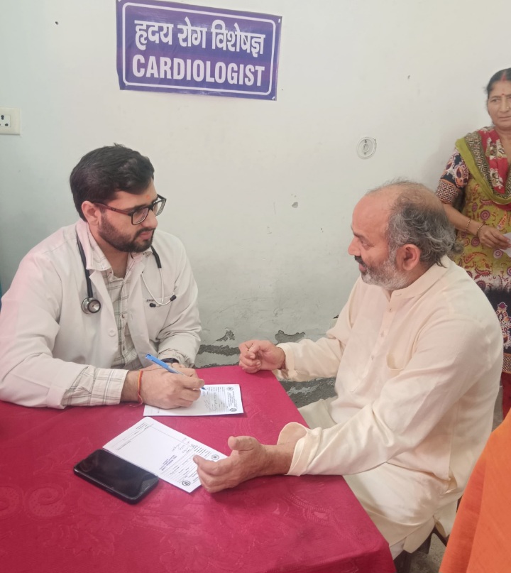 श्री महंत इन्दिरेश अस्पताल की ओर से ईसीजी, ब्लड शुगर, ब्लड प्रैशर की हुईं निःशुल्क जांचें व निःशुल्क दवाईयों का वितरण।