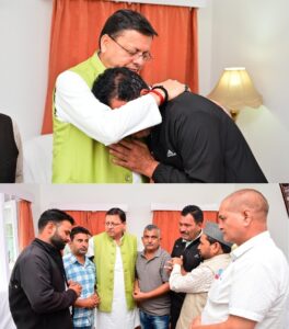 देहरादून/उत्तरकाशी :- उत्तराखंड में जारी प्राकृतिक आपदा के बीच मुख्यमंत्री पुष्कर सिंह धामी ने खराब मौसम की परवाह किए बिना उत्तरकाशी के आपदा प्रभावित क्षेत्रों का दौरा किया। उन्होंने हवाई निरीक्षण के जरिए क्षति का जायज़ा लिया और ग्राउंड ज़ीरो से राहत एवं बचाव कार्यों की समीक्षा की। मुख्यमंत्री प्रभवित लोगो से मिले तो उनकी आँखे भी नम हो गई उन्होंने कहा सरकार हर प्रभवित वयक्ति के साथ खड़ी है।