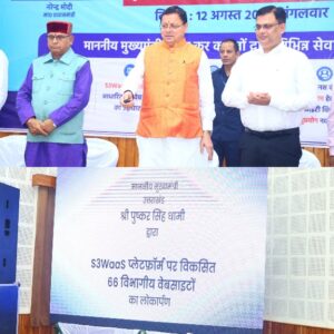 देहरादून :- मुख्यमंत्री पुष्कर सिंह धामी ने मंगलवार को मुख्यमंत्री कैम्प कार्यालय स्थित मुख्य सेवक सदन में सूचना एवं संचार प्रौद्योगिकी सक्षम सेवाओं का शुभारंभ किया। इनमें डिजिटल उत्तराखण्ड एप का उद्घाटन, सुरक्षित, स्केलेबल और सुगम्य (S3Waas) प्लेटफॉर्म आधारित 66 वेबसाइटों का उद्घाटन, नगरीय क्षेत्र में कूड़ा उठाने वाले वाहनों की रियल टाइम ट्रैकिंग के लिए विकसित की गई जीआईएस आधारित वेब एप का उद्घाटन, जन सुविधा के लिए संचालित 1905 सीएम हेल्पलाइन में एआई के अनुप्रयोग नवाचार का शुभारंभ और अतिक्रमण की निगरानी के लिए वेब आधारित एप्लीकेशन का शुभारंभ शामिल हैं।