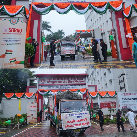 देहरादून :- स्वतंत्रता दिवस के अवसर पर श्री गुरु राम राय विश्वविद्यालय ने धराली (उत्तरकाशी) आपदा प्रभावितों के लिए राहत एवम् खा़द्य सामग्री भेजी। 2 ट्रक सहित 4 वाहनों में राहत एवम् खाद्य सामग्री लेकर विश्वविद्यालय की टीम शुक्रवार सुबह रवाना हुई। स्वतंत्रता दिवस के पावन अवसर पर जब पूरा देश आजादी का जश्न मना रहा था, उसी समय श्री गुरु राम राय विश्वविद्यालय ने धराली (उत्तरकाशी) आपदा से पीड़ित परिवारों के जख्मों पर मरहम रखने का संकल्प लिया। मानवीय संवेदनाओं से ओत-प्रोत यह पहल शुक्रवार सुबह तब साकार हुई, जब कुलपति डॉ. कुमुद सकलानी और रजिस्ट्रार डॉ. लोकेश गंभीर ने राहत सामग्री से लदे वाहनों को हरी झंडी दिखाकर रवाना किया। श्री गुरु राम राय विश्वविद्यालय के माननीय प्रेसीडेंट श्रीमहंत देवेन्द्र दास जी महाराज ने कहा, “संकट की इस घड़ी में एसजीआरआर परिवार के सभी सदस्या पीड़ितों के साथ कंधे से कंधा मिलाकर हर सम्भव सहयोग करें। यह हमारा धर्म है, और हमारा कर्तव्य भी है।”