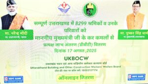 उत्तराखण्ड भवन एवं अन्य सन्निर्माण कर्मकार कल्याण बोर्ड द्वारा विशेष अभियान के तहत किया गया 8,299 आवेदनों का ऑनलाइन निस्तारण।