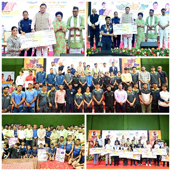 इस अवसर पर विभिन्न अंतरराष्ट्रीय प्रतियोगिताओं में पदक विजेता खिलाड़ियों को पुरस्कृत करते हुए, मख्यमंत्री ने कहा कि खेल दिवस के अवसर पर राज्य सरकार द्वारा कुल 250 से अधिक खिलाड़यों एवं उनके प्रशिक्षकों को लगभग 16 करोड़ रुपये की सम्मान राशि प्रदान की जा रही है। सम्मानित हो रहे खिलाड़ियों में पेरिस ओलंपिक 2024 में प्रतिभाग करने वाले खिलाड़ी मनदीप कौर, अमीषा रावत और मनोज सरकार को 50-50 लाख रुपये की सम्मान राशि प्रदान की गई है। इसी प्रकार, अंतर्राष्ट्रीय प्रतियोगिताओं में स्वर्ण पदक जीतकर देश का गौरव बढ़ाने वाले शौर्य सैनी और अभिनव देशवाल को 30-30 लाख रुपये की सम्मान राशि से पुरस्कृत किया गया। इसके अलावा “मुख्यमंत्री उदीयमान खिलाड़ी उन्नयन योजना” के अंतर्गत 3,900 खिलाड़ियों तथा “मुख्यमंत्री प्रोत्साहन योजना” के अंतर्गत 2,199 खिलाड़ियों को प्रतिमाह मिलने वाली उनकी छात्रवृत्ति की लगभग साढ़े 5 करोड़ रुपये की राशि भी प्रदान की गई।