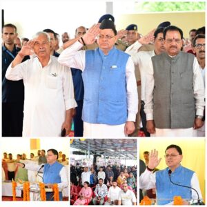 देहरादून :- मुख्यमंत्री पुष्कर सिंह धामी ने सोमवार को खटीमा में उत्तराखण्ड राज्य आन्दोलन के दौरान शहीद हुए आन्दोलनकारियों की स्मृति में आयोजित श्रद्धांजलि कार्यक्रम में प्रतिभाग किया। इस अवसर पर उन्होंने शहीद राज्य आन्दोलनकारियों को श्रद्धा सुमन अर्पित किये और उनके आश्रित्रों तथा राज्य आन्दोलनकारियों को सम्मानित भी किया।