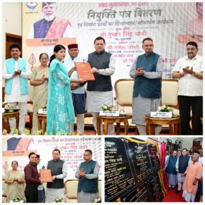 देहरादून :- मुख्यमंत्री पुष्कर सिंह धामी ने शनिवार को मुख्यमंत्री आवास स्थित मुख्य सेवक सदन में जनजाति कल्याण विभाग के अन्तर्गत संचालित राजकीय आश्रम पद्धति विद्यालयों में चयनित 15 सहायक अध्यापकों को नियुक्ति पत्र वितरित करने के साथ ही 15 करोड़ रुपए से अधिक लागत की विभिन्न विभागीय निर्माण योजनाओं का लोकार्पण व शिलान्यास किया।