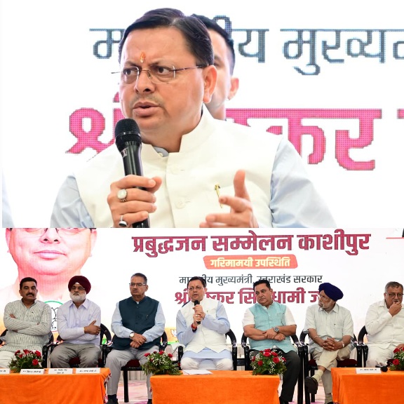 देहरादून/काशीपुर :- मुख्यमंत्री पुष्कर सिंह धामी ने आज काशीपुर में आयोजित प्रबुद्धजन सम्मेलन में प्रतिभाग कर जनसंवाद के माध्यम से समाज के विविध क्षेत्रों के प्रबुद्ध नागरिकों से संवाद स्थापित किया। सम्मेलन में मुख्यमंत्री ने राज्य सरकार की जनकल्याणकारी योजनाओं, विकास कार्यों तथा उत्तराखण्ड को देश का सर्वश्रेष्ठ राज्य बनाने के लिए किए जा रहे प्रयासों की विस्तारपूर्वक जानकारी दी।