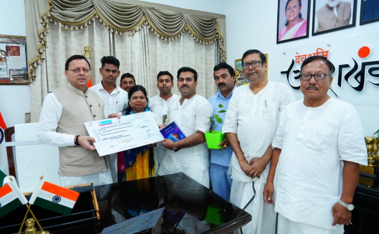 देहरादून :- आज मुख्यमंत्री पुष्कर सिंह धामी से सत्संग संस्था के प्रतिनिधिमंडल ने मुख्यमंत्री आवास, देहरादून में भेंट की। इस अवसर पर संस्था की ओर से हाल ही में उत्तराखंड में आई प्राकृतिक आपदाओं से प्रभावित लोगों की सहायता के लिए ₹1 करोड़ की धनराशि का चेक मुख्यमंत्री राहत कोष में भेंट किया गया।
