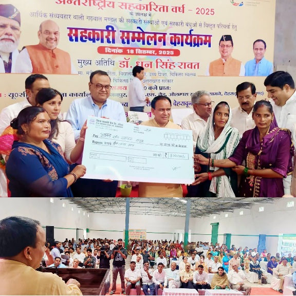 यह बात प्रदेश के सहकारिता मंत्री डॉ धन सिंह रावत ने आज अंतरराष्ट्रीय सहकारिता वर्ष-2025 के उपलक्ष्य में उत्तराखंड राज्य सहकारी संघ द्वारा निरंजनपुर सहकारी क्षेत्रीय कार्यालय में आयोजित सहकारी सम्मेलन में कही। “आर्थिक व्यवहार और सहकारी संस्थाएँ” थीम पर आयोजित कार्यक्रम में डॉ रावत ने कहा कि उत्तराखंड राज्य सहकारी संघ वर्तमान में 500 करोड़ रुपये के टर्नओवर के साथ राज्य की शीर्ष सहकारी संस्था है, और संघ ने अब 3 हजार करोड़ टर्नओवर का लक्ष्य तय किया है। इसके लिये संघ ने प्रदेशभर में नई व्यापारिक गतिविधियों का संचालन करेगा। इसके तहत सहकारी संघ जल्द ही हरिद्वार जनपद में मिनरल वाटर प्लांट की स्थापना करेगा और बाजार में ‘हिमाला जल’ नाम से बोतलबंद पानी लांच करेगा। इसके अलावा ऑर्गेनिक बायो-फर्टिलाइज़र निर्माण व फिनाइल उत्पादन इकाई की भी स्थापना की जायेगी। साथ ही प्रदेशभर में 500 सहकारी क्रय केंद्रों की स्थापना की भी योजना है। डॉ रावत ने कहा कि इन क्रय केंद्रों में किसानों को उनके अनाज, फल एवं सब्जियों का उचित मूल्य सीधे गाँव स्तर पर उपलब्ध होगा। इस व्यवस्था से बिचौलियों की भूमिका समाप्त कर लाभ सीधे किसानों तक पहुँचाने का लक्ष्य है