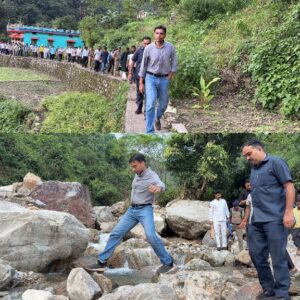 हेली का विकल्प छोड़; दुर्गम रास्तों से पैदल तथा सड़क मार्ग से सफर कर आपदा से हुए नुकसान का लिया जायजा।