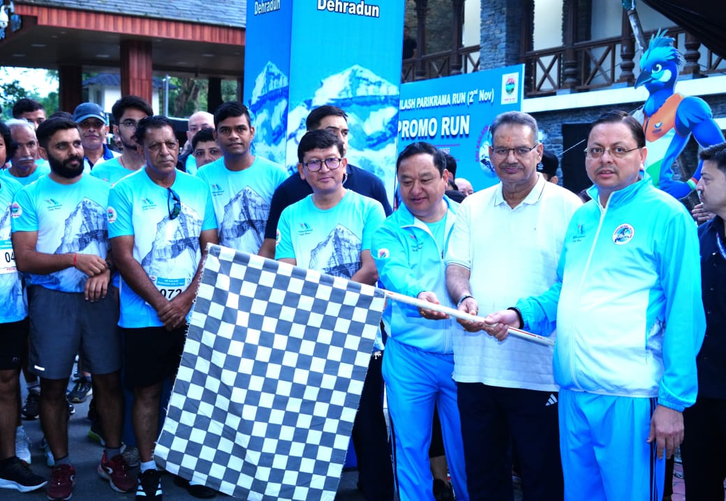 देहरादून :- मुख्यमंत्री पुष्कर सिंह धामी ने रविवार को मुख्यमंत्री आवास से 2 नवंबर 2025 को प्रस्तावित आदि कैलाश परिक्रमा रन (अल्ट्रा मैराथन) प्रोमो रन का फ्लैग ऑफ किया और लोगो का अनावरण किया। राज्य स्थापना के 25 वर्ष पूर्ण होने के उपलक्ष्य में 02 नवंबर 2025 को गूंजी गांव से आदि कैलाश मैराथन का आयोजन किया जाएगा। यह आयोजन मुख्यमंत्री पुष्कर सिंह धामी के साहसिक और शीतकालीन पर्यटन को बढ़ावा देने, युवाओं को स्वस्थ जीवन के लिए प्रोत्साहित करने और नशा मुक्त उत्तराखण्ड के संकल्प को पूर्ण करने के उद्देश्य से किया जा रहा है। यह अल्ट्रा मैराथन 10,300 से 15,000 फीट ऊंचाई पर होगी।