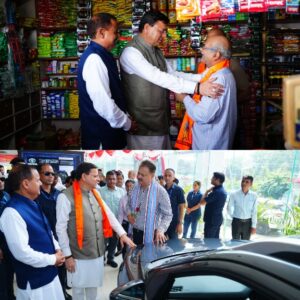 देहरादून :- मुख्यमंत्री पुष्कर सिंह धामी ने बुधवार को देहरादून के कुँआवाला बाजार में “स्वदेशी अपनाओ” तथा जीएसटी की नई दरों के व्यापक प्रचार-प्रसार हेतु जनजागरूकता कार्यक्रम के अंतर्गत बाजार भ्रमण किया। इस दौरान मुख्यमंत्री ने दुकानदारों एवं स्थानीय नागरिकों से बातचीत कर उन्हें स्वदेशी उत्पादों के उपयोग के लाभों और कर प्रणाली में हाल ही में लागू की गई नई दरों के संबंध में जानकारी दी।