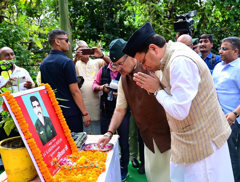 देहरादून :- मुख्यमंत्री पुष्कर सिंह धामी ने गुरूवार को शहीद राईफल मैन नरेश कुमार के गुजराड़ा मानसिंह सहस्त्रधारा रोड़ स्थित आवास से शहीद सम्मान यात्रा 2 का शुभारम्भ किया। मुख्यमंत्री ने इससे पहले शहीद राईफलमैन नरेश कुमार के चित्र पर माल्यार्पण के साथ ही शहीद स्थल पर पुष्प चक्र अर्पित कर शहीदों को श्रद्धांजलि अर्पित की । इस अवसर पर मुख्यमंत्री ने शहीद नरेश कुमार के परिजनों से भेंट कर उनके आंगन की मिट्टी का भी संग्रहण किया। उन्होंने शहीद के परिजनों को शहीद सम्मान समारोह में शामिल होने का भी आमंत्रण दिया। मुख्यमंत्री ने कहा कि राज्य सरकार द्वारा देहरादून के गुनियाल गाँव मे शौर्य स्थल (सैन्य धाम) का निर्माण कराया गया है जिसमें प्रदेश के सभी शहीद सैनिकों के घर-आँगन की पवित्र मिट्टी स्थापित की जा रही है।