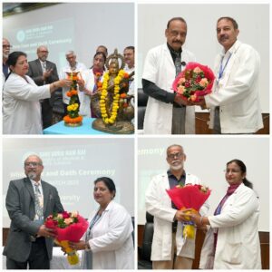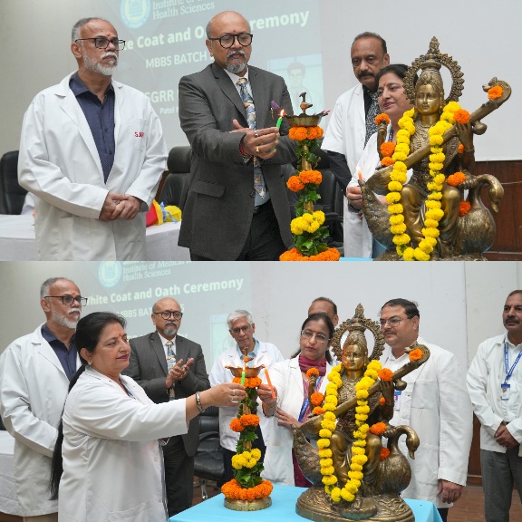 देहरादून :- श्री गुरु राम राय राय इंस्टीट्यूट ऑफ मेडिकल एण्ड हैल्थ साइंसेज के नव आगंतुक (फ्रैशर) छात्र-छात्राओं की वाईट कोट सैरेमनी व चरक शपथ सम्पन्न हुई। एसजीआरआरआईएमएण्ड एचएस के सभागार में एमबीबीएस-वर्ष 2025 बैच के नव आगुंतक (फ्रैशर) छात्र-छात्राओं की वाईट कोट सैरेमनी व चरक शपथ श्री गुरु राम राय विश्वविद्यालय के वाईस चान्सलर इन्चार्ज एवं माननीय प्रेसिडे़ंट के सलाहकार प्रो.डॉ. प्रथप्पन के पिल्लई, एचजीआरआरआईएमएण्डएचएस के निदेशक डॉ. मनोज कुमार गुप्ता, प्राचार्य डॉ. अशोक नायक व श्री महंत इन्दिरेश अस्पताल के मुख्य चिकित्साधीक्षक डॉ. कर्नल अनिल मलिक द्वारा सम्पन्न करवाई गई। कार्यक्रम का शुभारंभ मुख्य अतिथि श्री गुरु राम राय विश्वविद्यालय के वाईस चान्सलर इन्चार्ज एवं माननीय प्रेसिडे़ंट के सलाहकार प्रो.डॉ. प्रथप्पन के पिल्लई, निदेशक डॉ. मनोज कुमार गुप्ता, प्राचार्य डॉ. अशोक नायक व श्री महंत इन्दिरेश अस्पताल के मुख्य चिकित्साधीक्षक डॉ. कर्नल अनिल मलिक द्वारा दीप प्रज्जवलित कर किया गया।