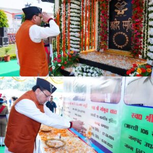 देहरादून :- मुख्यमंत्री पुष्कर सिंह धामी ने मंगलवार को पुलिस लाइन्स, देहरादून में पुलिस स्मृति दिवस के अवसर पर आयोजित कार्यक्रम में प्रतिभाग किया। इस दौरान मुख्यमंत्री ने पुलिस एवं अर्द्ध सैन्य बलों के शहीदों को पुष्प चक्र अर्पित कर श्रद्धांजलि दी। मुख्यमंत्री ने शहीद पुलिस जवानों के परिजनों को भी सम्मानित किया।