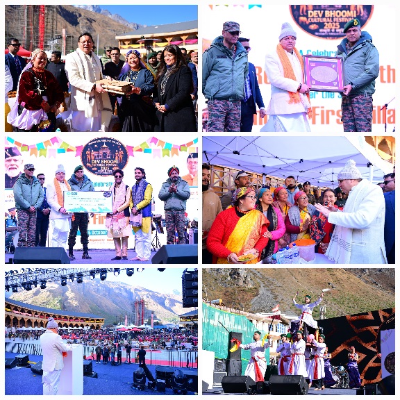 देहरादून/माणा :- मुख्यमंत्री पुष्कर सिंह धामी रविवार को देश के प्रथम गाँव माणा में आयोजित दो दिवसीय “देवभूमि सांस्कृतिक महोत्सव 2025” के समापन समारोह में पहुँचे। इस आयोजन में स्थानीय समुदायों, पर्यटकों और गणमान्य अतिथियों की उत्साहपूर्ण सहभागिता देखने को मिली। महोत्सव का संचालन भारतीय सेना एवं उत्तराखंड सरकार के संयुक्त तत्वावधान में किया गया।