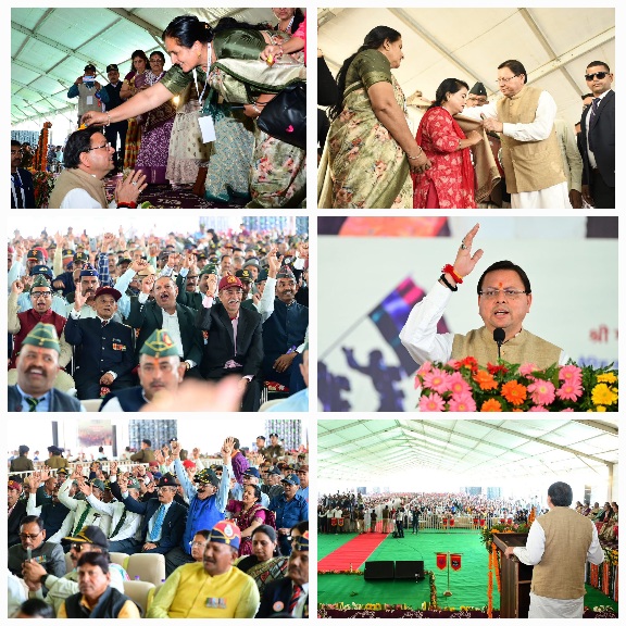 मुख्यमंत्री ने उपस्थित पूर्व सैनिकों पर पुष्पवर्षा कर राज्य निर्माण व राष्ट्र सेवा में उनके योगदान के लिये सभी का अभिनन्दन किया। उन्होंने कहा कि उत्तराखंड का हर परिवार गर्व से कह सकता है कि उसके घर से कोई न कोई भारत माता की सेवा में समर्पित है। मुख्यमंत्री ने कहा कि देवभूमि उत्तराखंड वास्तव में वीरभूमि है, जहाँ की माटी में ही राष्ट्रभक्ति और बलिदान की भावना रची-बसी है।